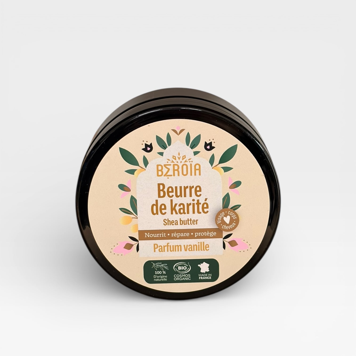 Vores BEROÏA økologiske shea butter er en sand gave fra naturen, der er skabt til at nære og beskytte din hud og dit hår. Høstet af en kvindekooperativ i Ghana, er denne rene, uforarbejdede smør rig på vitaminerne A, D, E og F, hvilket gør den ideel til at genoprette elasticitet og hydrering til tør og sensitiv hud.